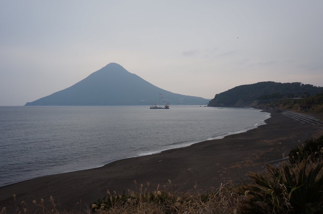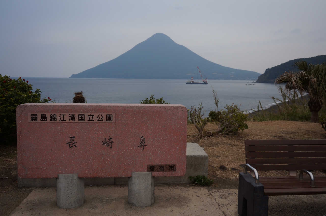 開聞岳を望む風光明媚な海岸線。(長崎鼻)
