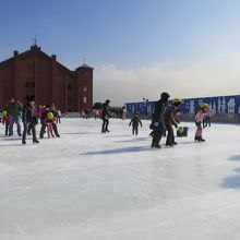 赤レンガパークの赤レンガ倉庫1号館(短い方)横のスペースにある、アートとコラボしたスケートリンクです。青を背景に白抜きされたかわいい絵に周りを囲まれたスケートリンクは、後ろの赤レンガ倉庫との相性もよく、絵になる冬らしい風景でした。休日の午前中でしたがすでに沢山の人が滑っていました。家族連れが多く、小さな子どもたちも沢山滑っていて、娘も滑りたいと言っていましたが、予定が詰まっていたので、見学だけしました。近所にこんな素敵なスケートリンクがあったら最高だと思います。