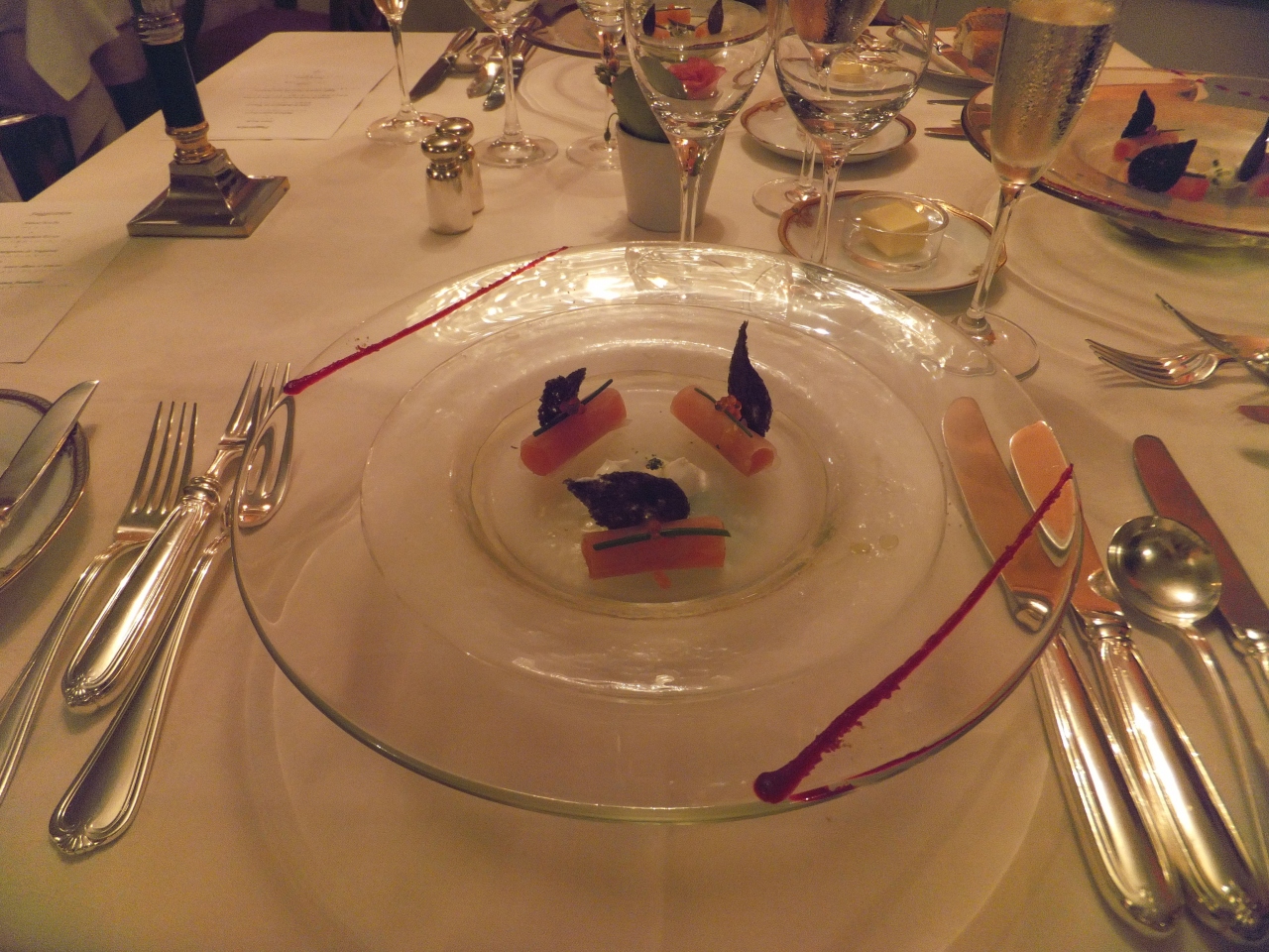 10000円のディナーコースを注文し、別にグラス2500円くらいのシャンパンを注文してもらいました。