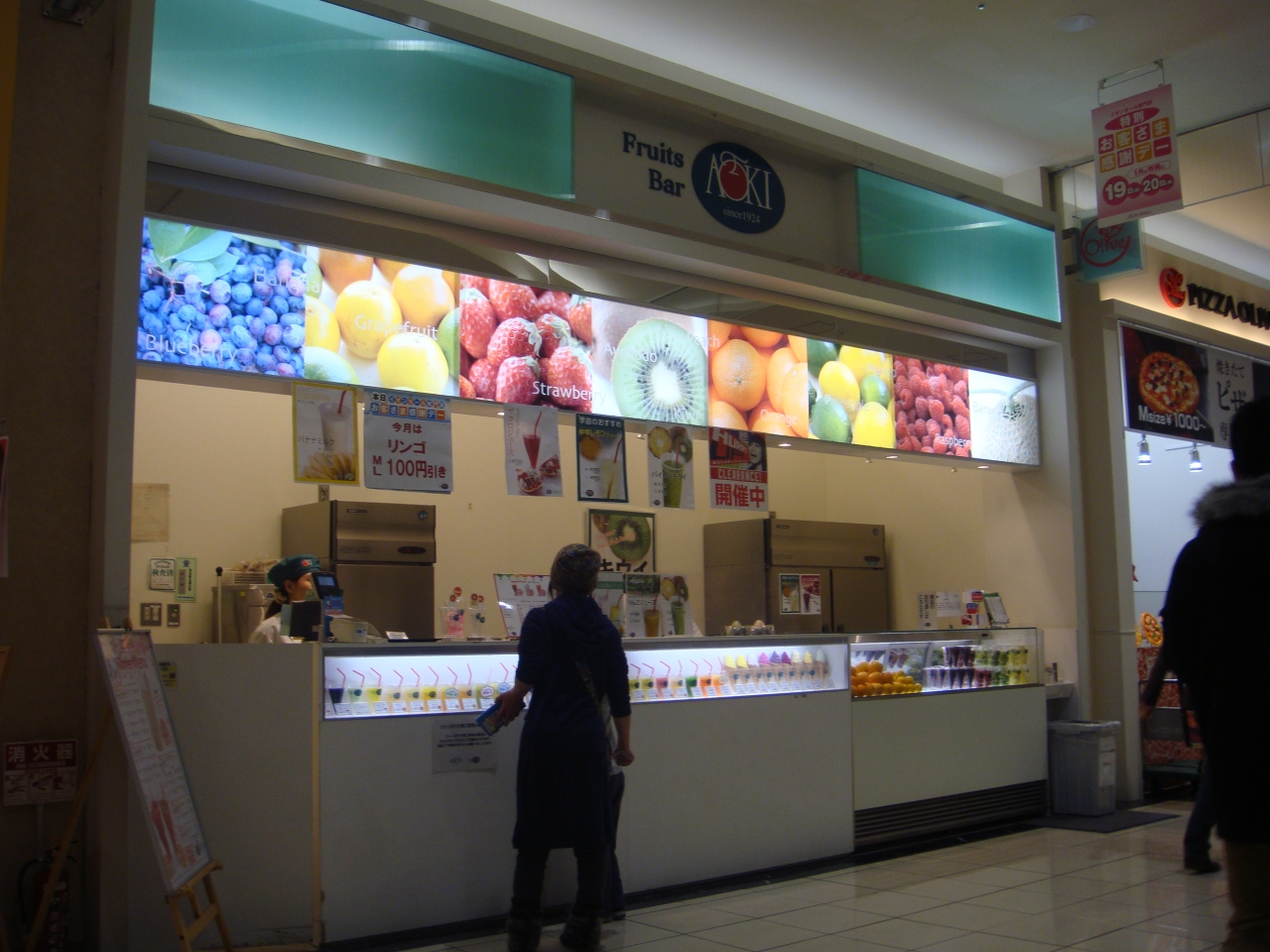 イオンモール大和店の中央エスカレーター横にあります。ジュース50円引きセールを開催していましたので、キウイジュースをオーダー。Mサイズ330円が280円になりました。