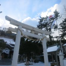 江差のいにしえ街道沿いにあり、鳥居の向こうに江差の浜も見える、海に近い場所に建っています。蝦夷一の宮ということですが(北海道神宮ではないのですね?)、境内は意外にも小さいものでした。山車が巡行する渡御祭りで有名ですが、祭りは8月。今回は季節が真逆の1月に訪れました。それでも鳥居をくぐると、右手に山車のミニチュアの並んだ模型山車館というのがあり、祭りの様子を伝えていました。ショーウィンドウのような感じで、外からいつでも眺めることができます。