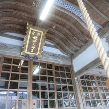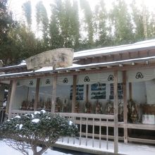 また、左手にはお札やお守り、絵馬などを販売する社務所もありました。ここの絵馬は蝦夷一の宮の銘があり、伝説の折居姥が群来をもたらす様子をあしらったものとなっています。