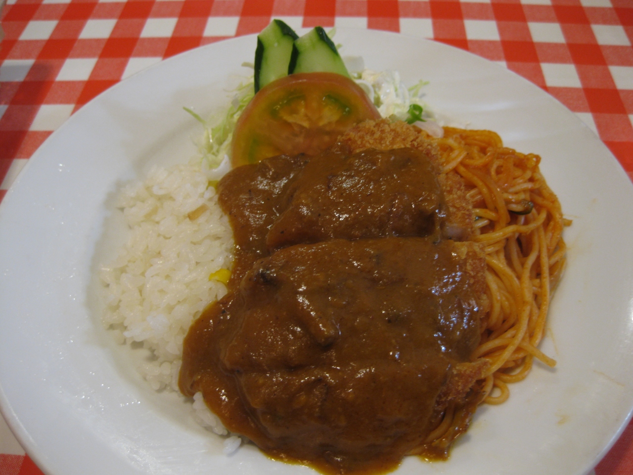 トルコライス(980円)はトンカツとピラフとナポリタンとサラダが一皿になっていて、ボリュームがあるように見えても、意外と食べきれる量でした。そのほかにミニ長崎風ミルクセーキ(300円)も注文しました。通常のミルクセーキを凍らせてかき氷状態になっているもので、おいしかったです。ここのトルコライスと長崎風ミルクセーキをおすすめできます。