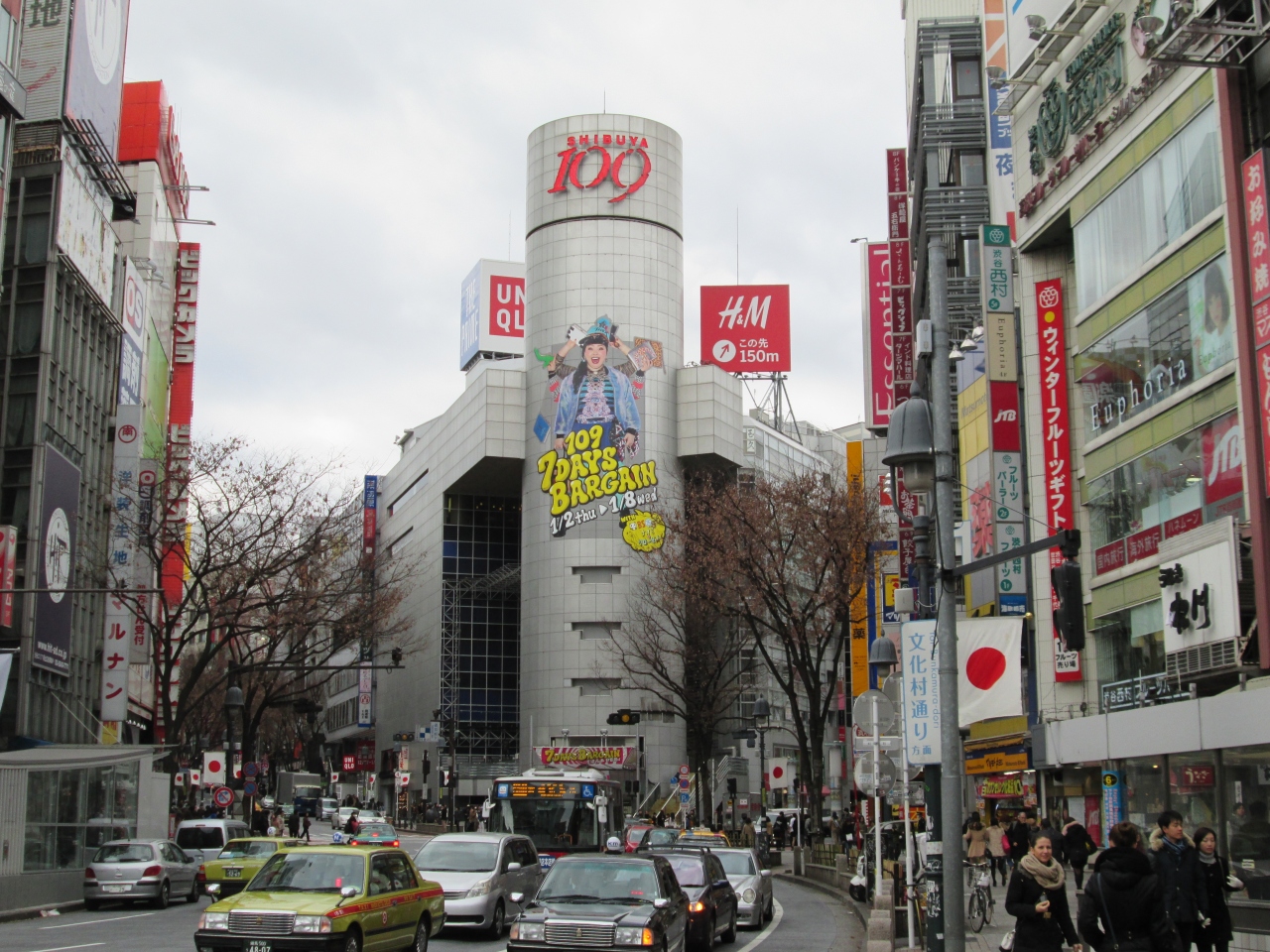 渋谷駅ハチ公口を出ると大きなスクランブル交差点があり、交差点の向こうにそびえるように建つビルで、定期的に変わる広告もインパクトがあります。日本の若い女性をターゲットにしたファッションビルです。おそらく流行ファッションの最先端となるアイテムがここで揃います。8階プラス地下2階と売り場面積が広いです。