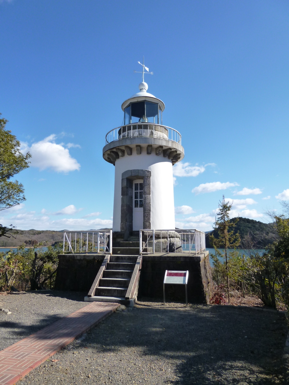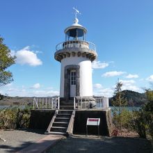 入鹿池に面して建つ白亜の灯台
