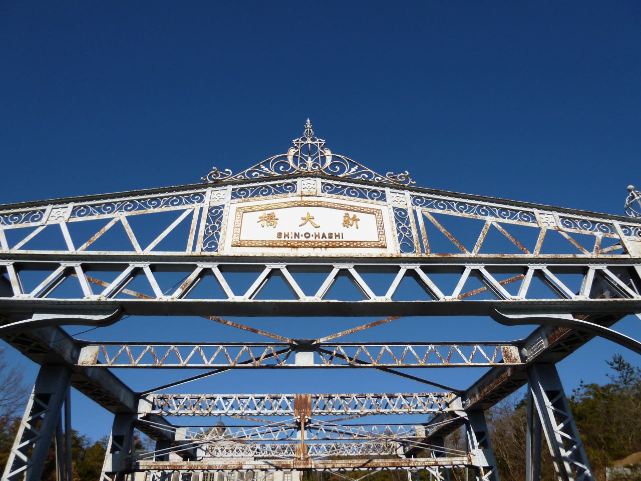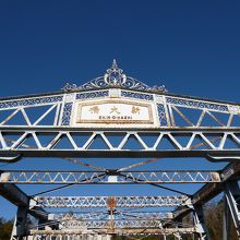 明治も末期の45年に東京の隅田川に架けられ、市電もこの橋を渡って走っていたそうです。高く掲げられた「新大橋」の銘板に、日清・日露の二度の戦争に勝利に意気軒高な人々の精神が感じられるように思います。なお、隣接する金沢監獄正門は工事中でした。