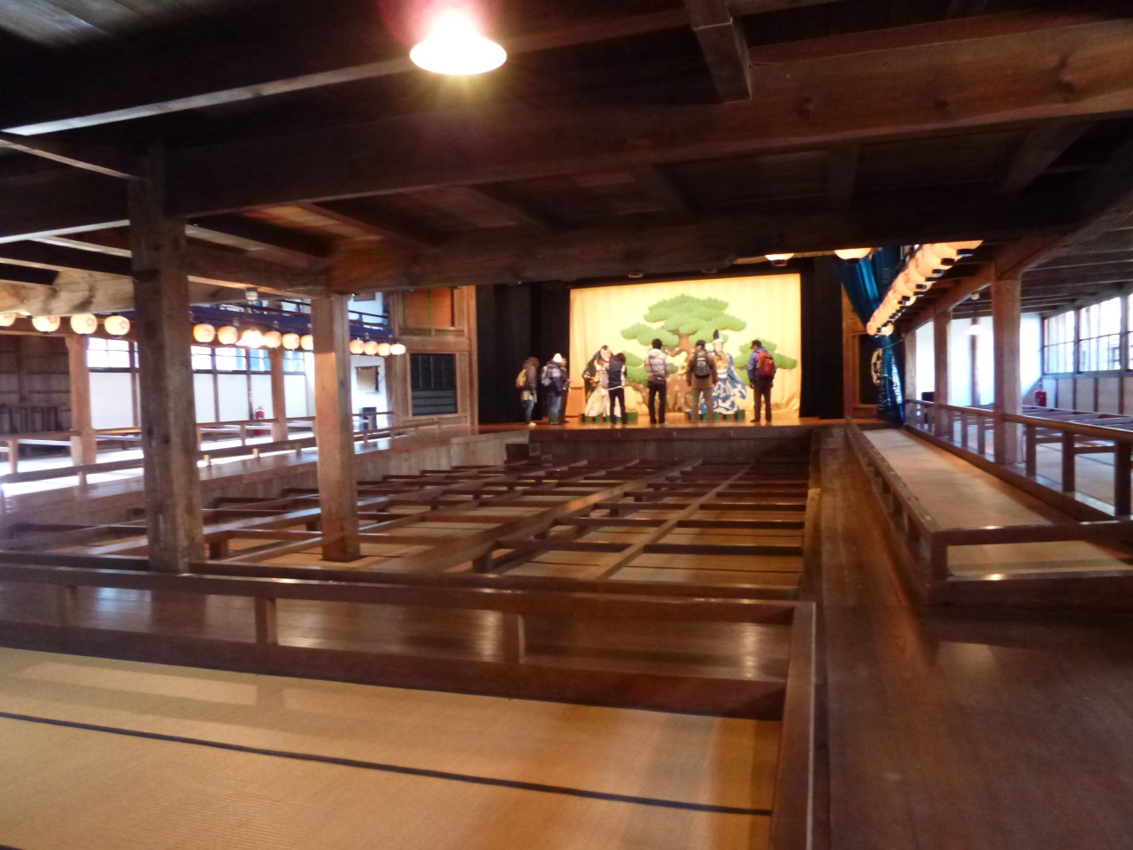 当初は大阪にあり、歌舞伎や漫才など、大衆演劇が演じられていた他、政治集会など行われていたそうです。人力で動く回り舞台や、枡形に区切られた土間、そして花道などの構造が良く分かります。現代の我々が劇場や市民ホールに通うような感覚で、明治の人たちは芸能を楽しんでいたのでしょうし、実に文化的に豊かな時代であったように思います。