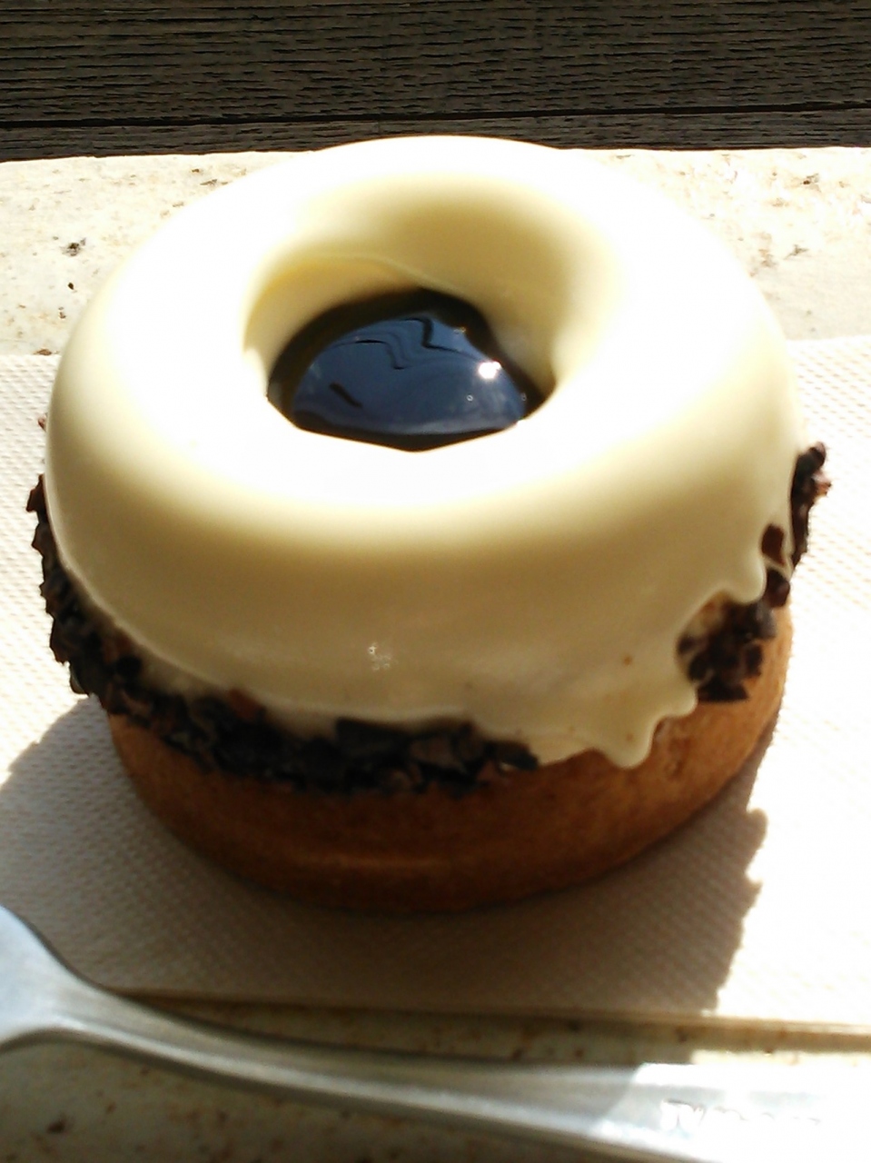 話題のドーナツ形のティラミスとブレンドコーヒーを注文。ティラミスはまわりがホワイトチョコのようで、美味しかったです。