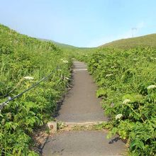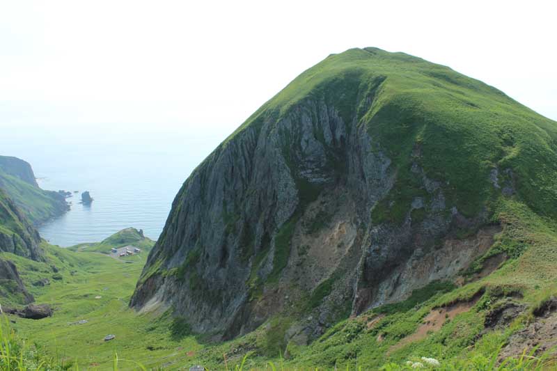 今回の旅行では、観光バスで桃岩展望台に行きましたが、行ったときにはガスが出たこともあり、香深から歩いて2回ほど登りました。往復でも一時間半あれば十分に行ってかえって来れます。危険な所や迷いそうな所は特になく、沿道にはセリ科の植物やレブンシオガマ、チシマフウロなど高山植物がたくさん咲いていました。