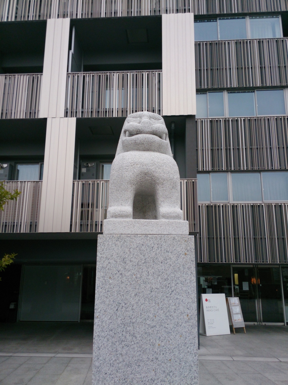 神楽坂を散歩していて風変わりな狛犬に出会った。