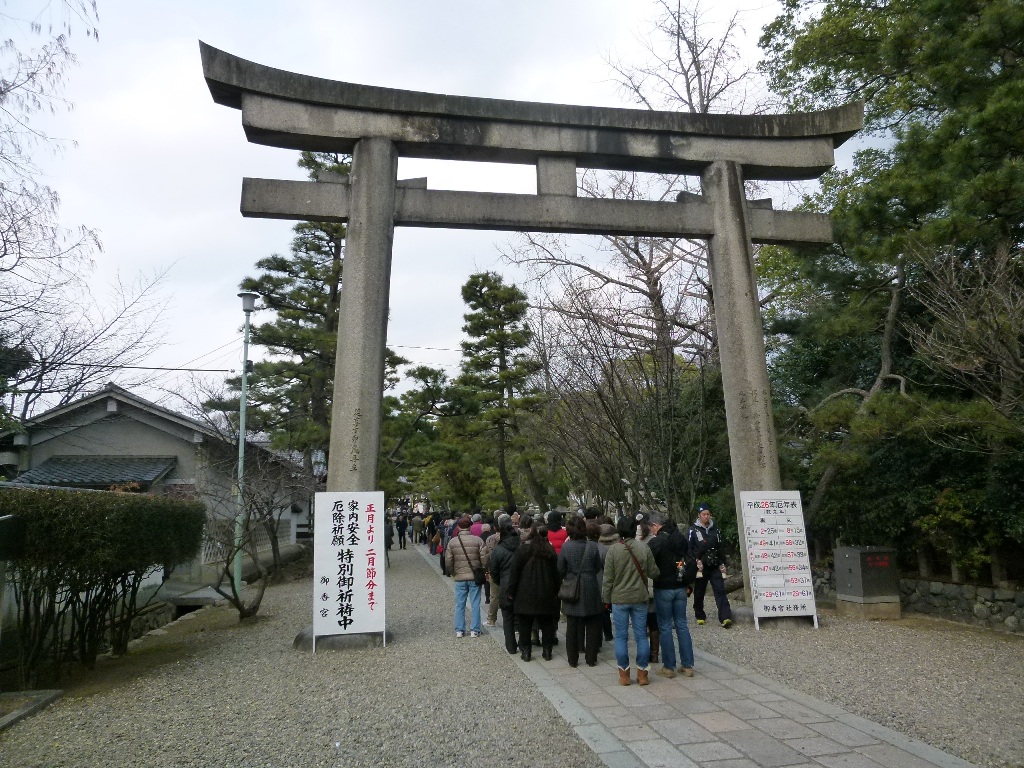 今年の初詣は、伏見地域にて三社参りをしました。伏見稲荷大社、藤森神社、そしてここ御香宮神社です。いや、なんと、今日は元旦。人が多いこと多いこと。鳥居がある入口の大手筋通りまでの行列です。本殿の横へ行って手を合わせました。また改めて来ます。