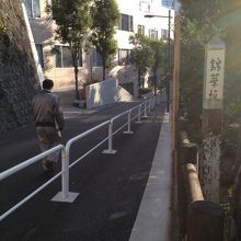 錦華公園の横を通る結構傾斜のある坂らしい坂です。