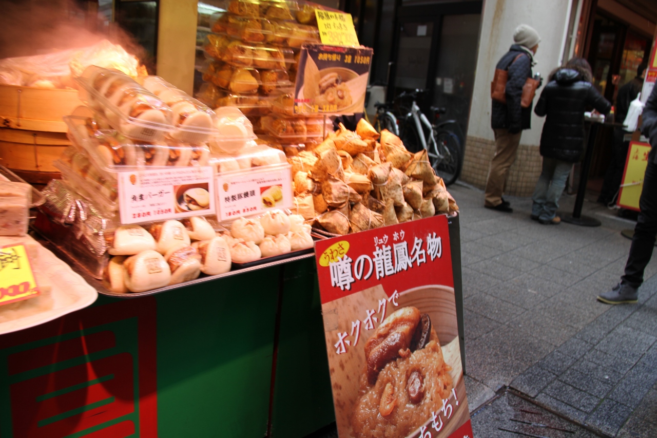 南京町東西約200m、南北110mの範囲に100あまりの店舗が軒を連ね、店頭の路上で点心・スイーツ・食材・記念品などを売る店も多い。