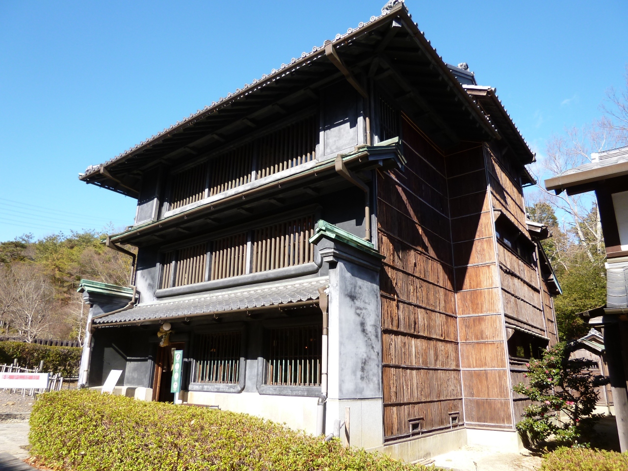 東松家は名古屋で油屋を営んでいたとのことで、内部にはその当時の生活道具を始め客と商談をしたであろう座敷などが残され開放されています。ここで特筆すべきは三階まで吹き抜けの空間を設けていたり、和風木造ので三階建てという構造でしょう。三階までほぼ垂直の正面など非常に興味深いです。
