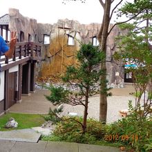 立派できれいな建物です。建物の中には間欠泉についてのちょっとした展示コーナーがあり、敷地内にはいい雰囲気の足湯もありました。