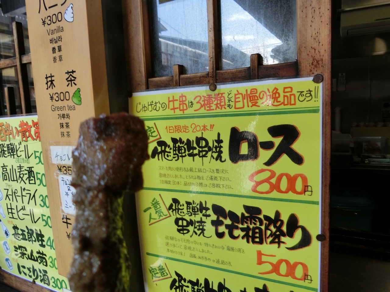 口コミ情報から、このじゅげむの飛騨牛の串焼きが美味いというので、