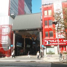 道頓堀川に架かる太左衛門橋があります。その橋から延びる通りのアーケード街です。このアーケードで待っていてくれたのはマスコットの「みにゃみんちゃん」。石畳を歩いていると可愛い「みにゃみん」が地面に現れます。大阪独特の大きな看板が目立ちますね。何度行っても楽しいですね。