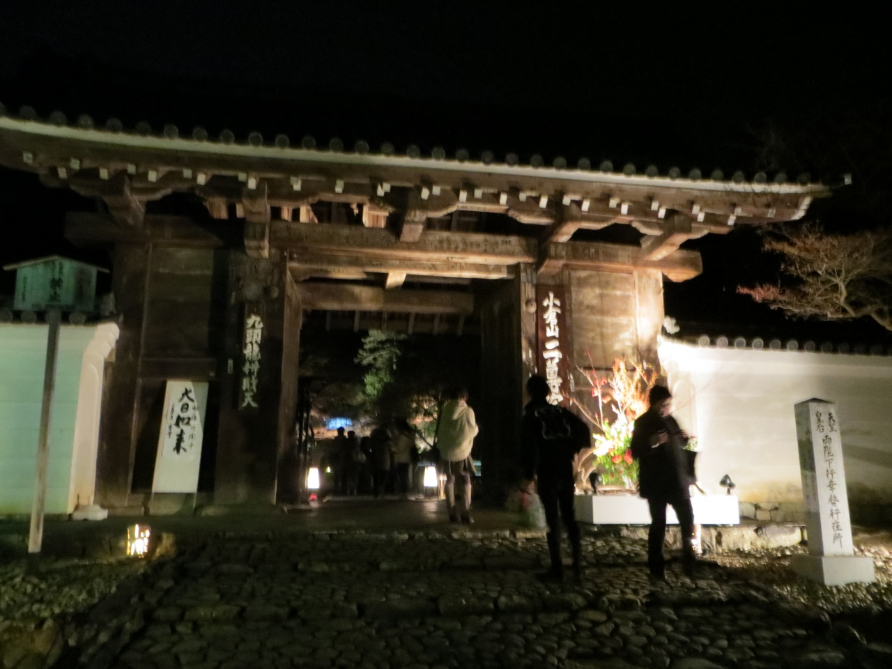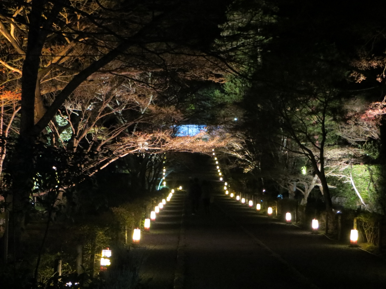 昼間の二尊院も情緒があって美しいですが、灯篭に浮かび上がった二尊院も見逃せません。嵐山の花灯篭の終着地点となっています。この期間は夜間も特別拝観出来て多くのカップルが二尊院の奥の闇に消えていきました。拝観料は500円。