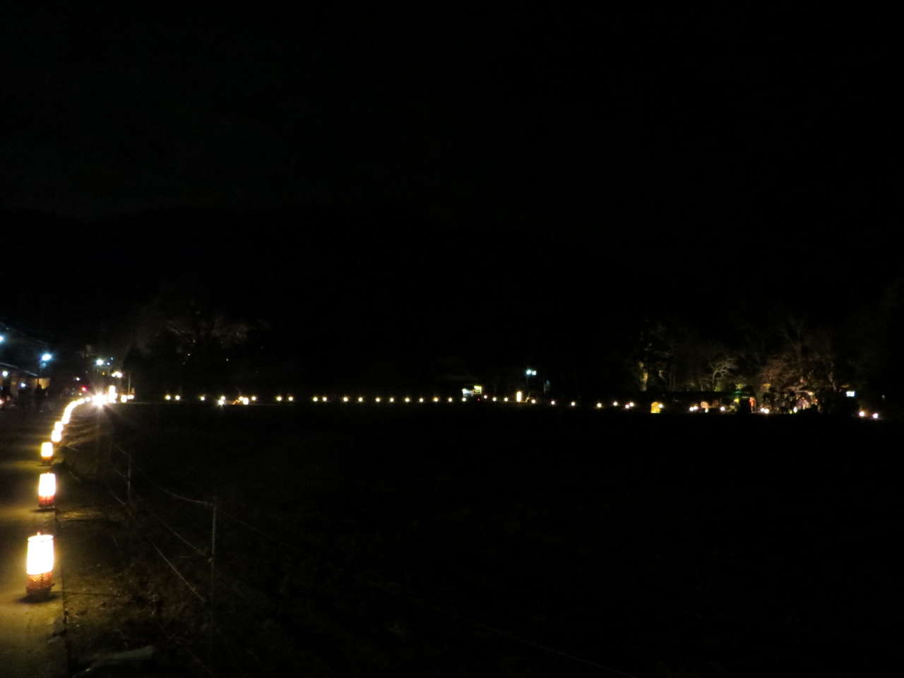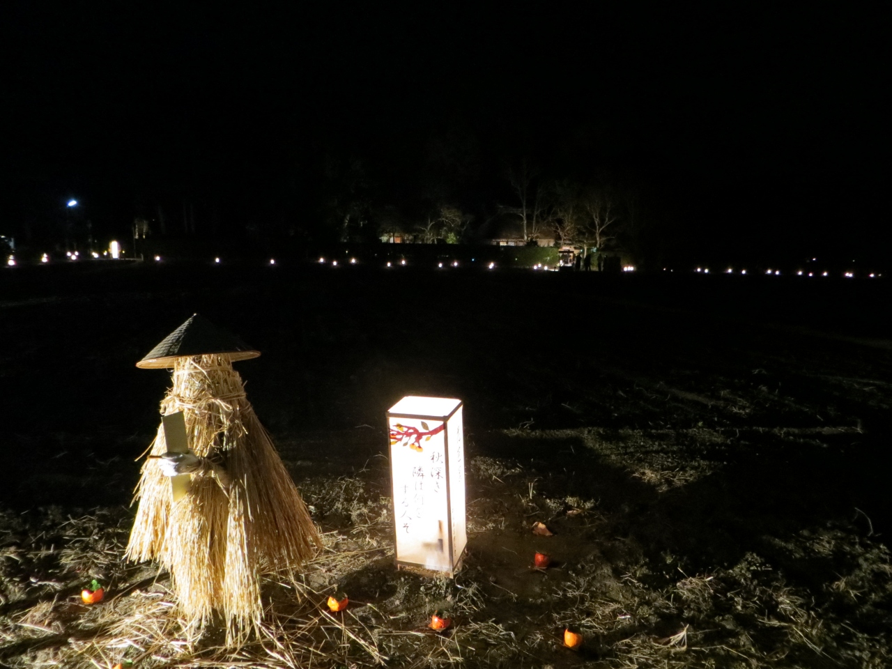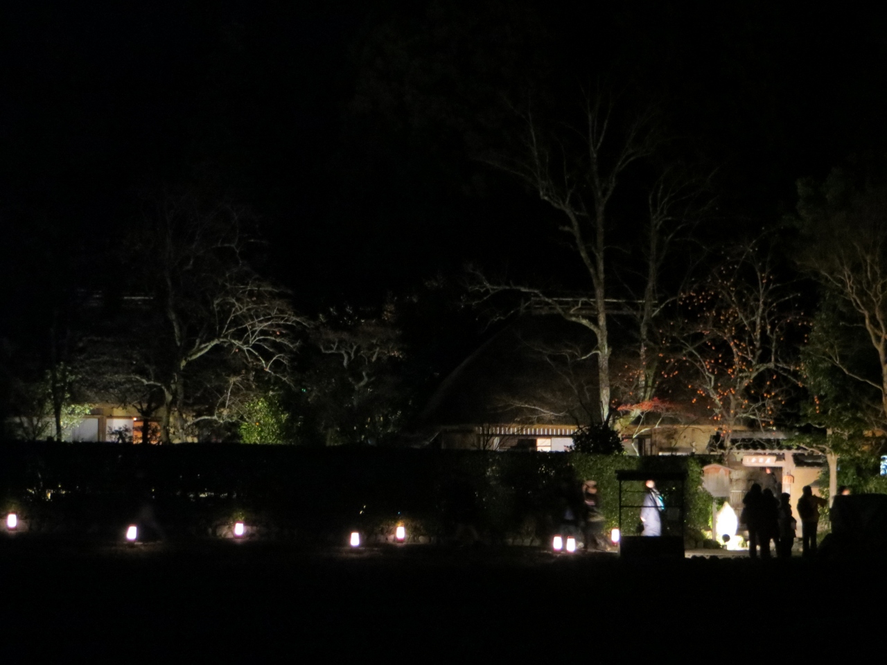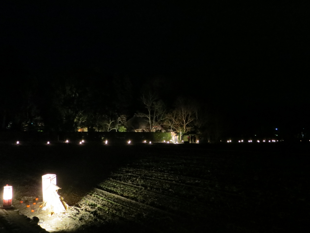 落柿舎の前に畑があります。ここは建物が建てられないように京都市が購入したものだそうです。小豆などが綺麗に植えられています。落柿舎を借景として農村の風景が楽しめます。嵐山の花灯篭ではこの畑もライトアップされます。真っ暗の中で幻想的です。