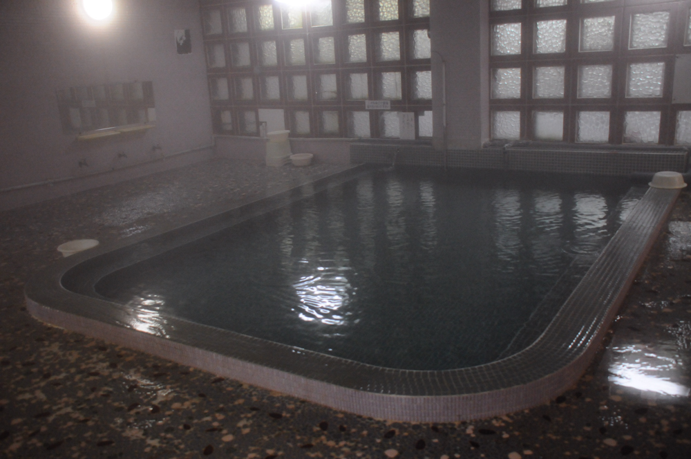 隣にある小さめの湯船には、市営の源泉を沸かした熱い湯が満たされているので、こちらと交互に入ると慣れてきます。