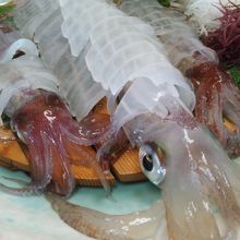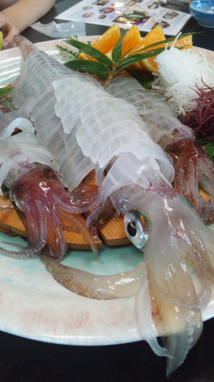 呼子のイカは透き通っています。食感もコリコリしていてとても美味しいです。ただ、数人分イカが合わせて盛られるので、気を使いながら食べないといけません。1人1杯という訳ではないようですね。ロケーションがよく、海が見えるテーブルかあります。眺めはすごく良いですが夏は日がさして暑いです。