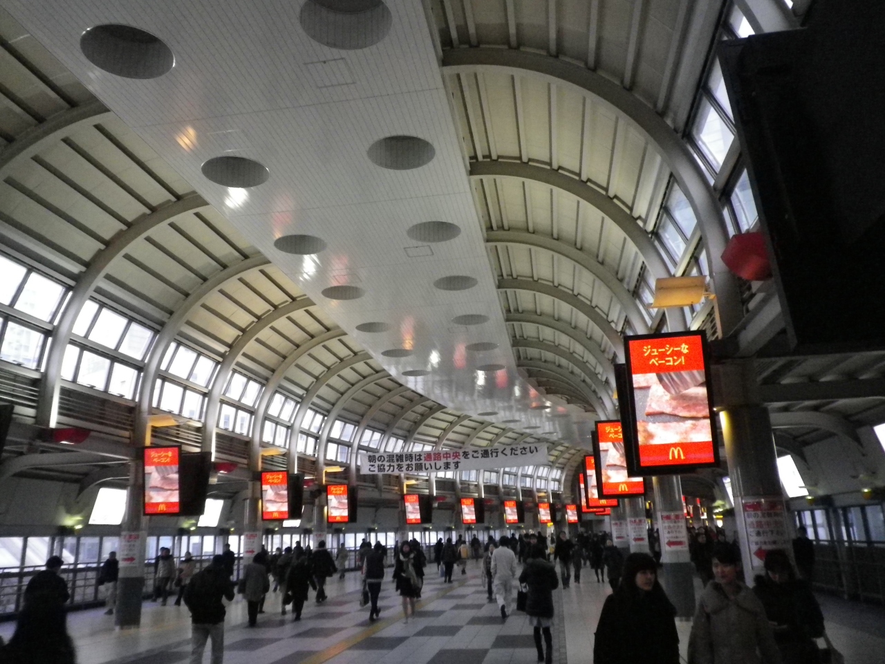 品川駅の改札を出て右を向き、港南口へ向かう通路を通るたびになんだか宇宙船に乗り込むような気分になる。天井は高くいくつものモニターが通路の左右にずらりと並んでいる。それにしてもずいぶん変わったものだと思う。