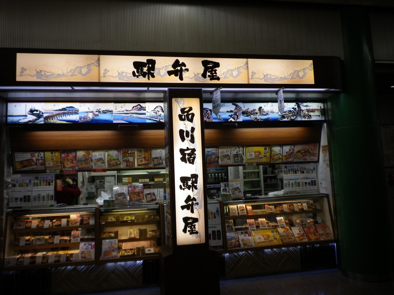 品川駅構内にある駅弁販売店。現在は構内でも様々なものが購入できるので駅弁を購入する人も減っているようだけれど、いつまでもがんばって販売してもらいたい。