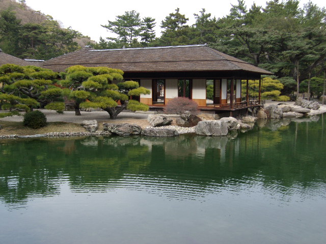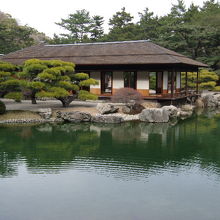 栗林公園の回遊式庭園の中心的な建物です。唐詩の一句「水を掬すれば月手に在り」から命名されたそうです。南庭を回遊していて、飛来峰からの掬月亭がとても気に入りました。しばし時間を忘れ見入ってしまいました。別料金が必要ですが、亭内でお茶を楽しむこともできるようです。