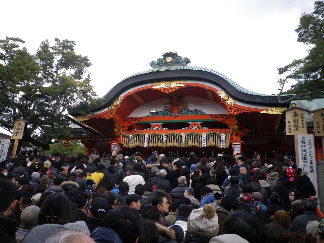 京都で最も人気のある神社の一つ伏見稲荷です。伏見稲荷には電車の路線が複数あり、バス路線も複数あるのでアクセスは簡単です。但し、休日、特に年始の京都は猛烈に混雑します。特にバスはかなり混雑するので注意が必要です。伏見稲荷は連なって立てられている鳥居が圧巻です。また参道はすずめの丸焼き等変わった名物があったりと楽しいところです。