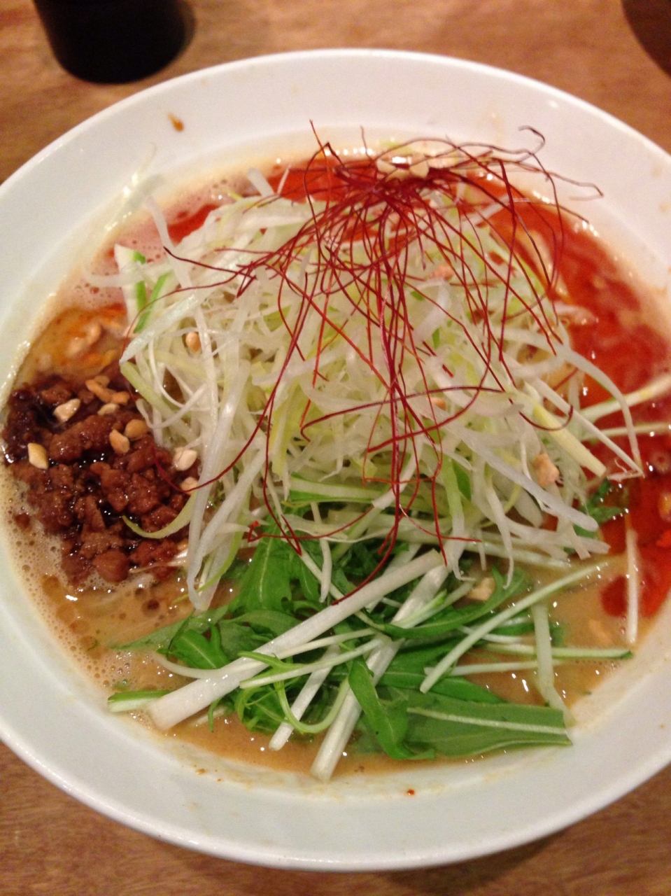 坦々麺は、レモンを絞っていただく感じ。色鮮やかで味も良しでした。