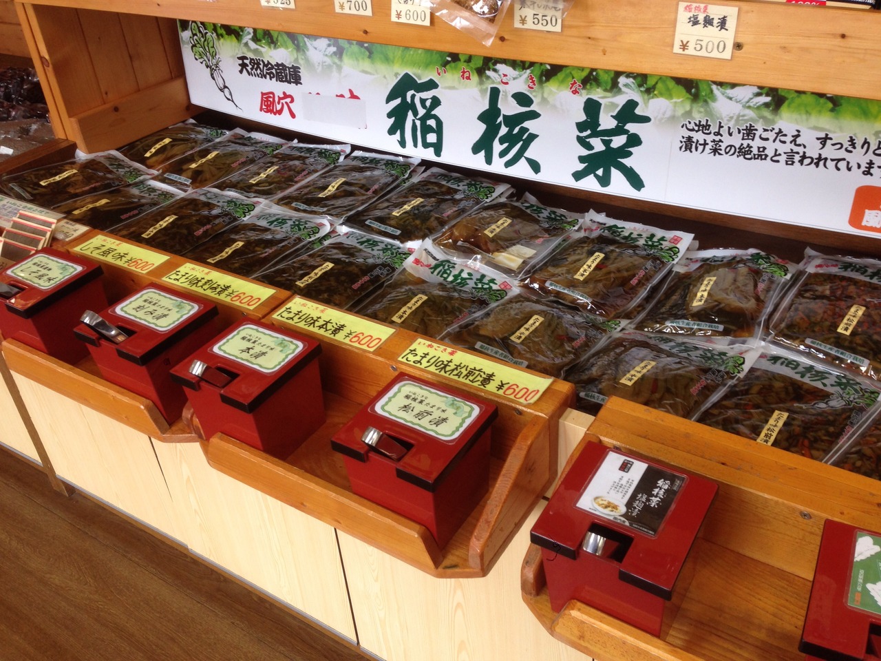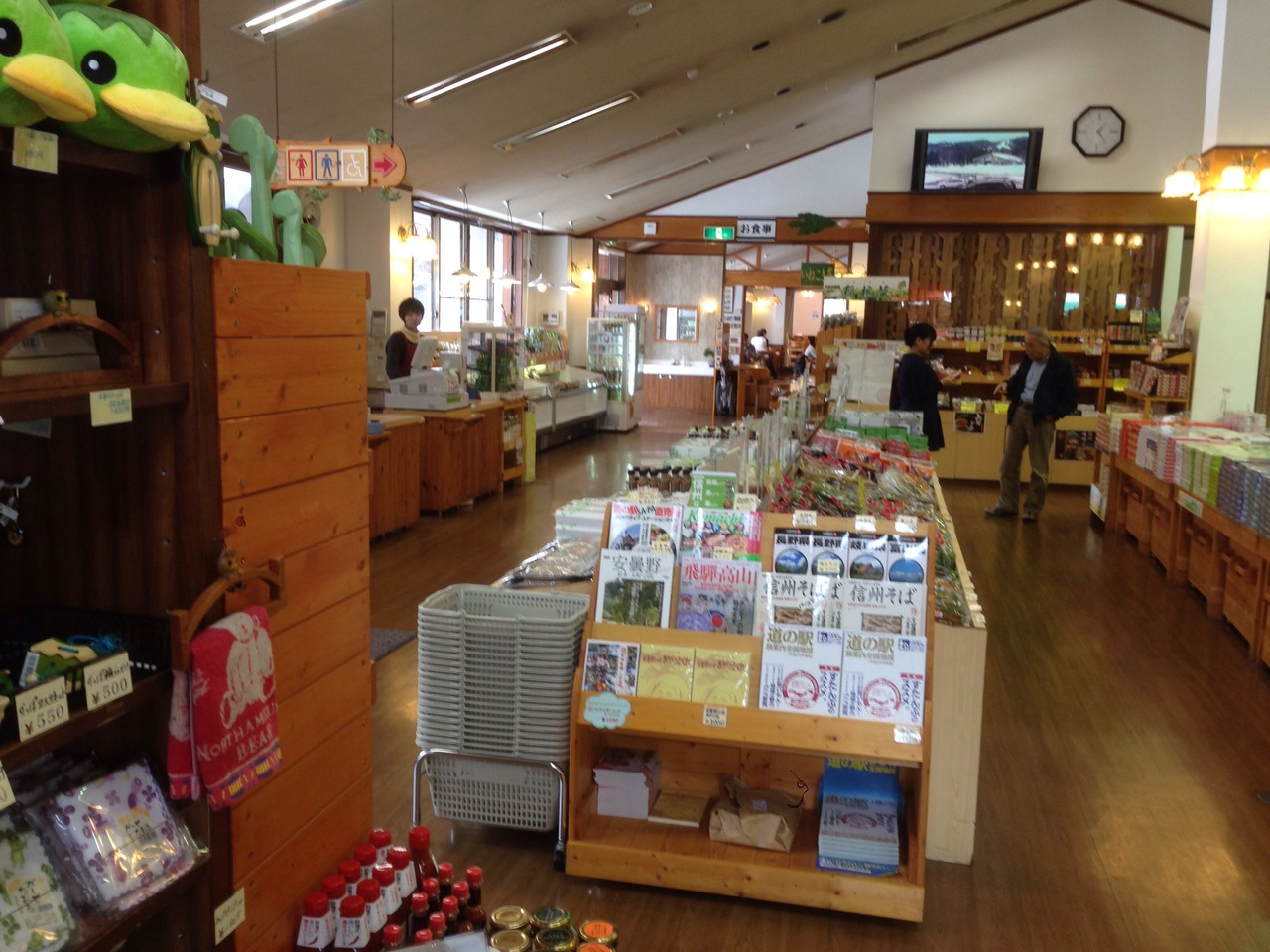 信州のお土産がかなり充実していて、七味唐辛子、野沢菜漬け、野沢菜茶漬け、わさび漬けなどを買い込みました。