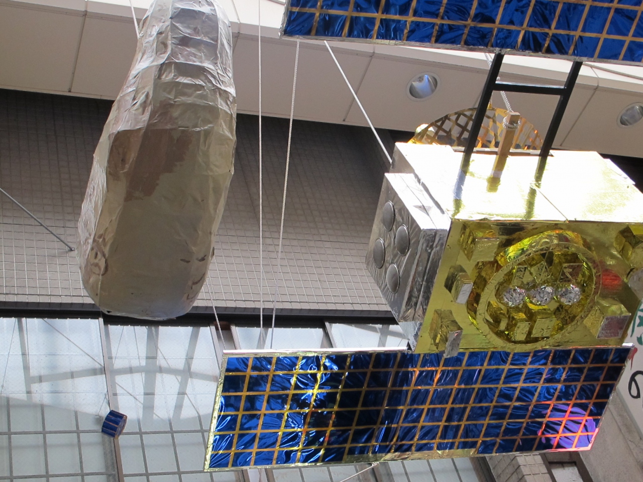展示は、アニメのキャラクターのほかに、衛星のはやぶさがありました。はやぶさが行ったイトカワもついていました。