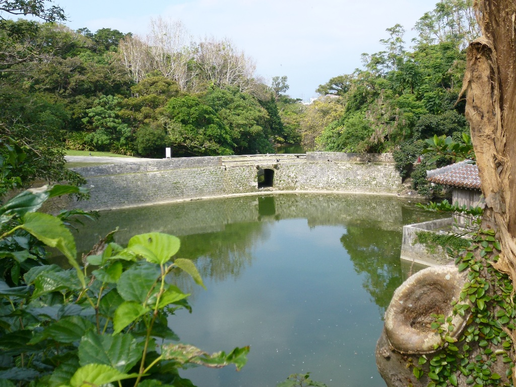 円覚寺を観光し、次はその前にある池の「円鑑池」です。約500年前に造られた人工池です。首里城から流れてきた雨水や湧水が溜まるようになっているようです。ここも沖縄戦で破壊されましたが、1968年に修復され、現在に至っています。