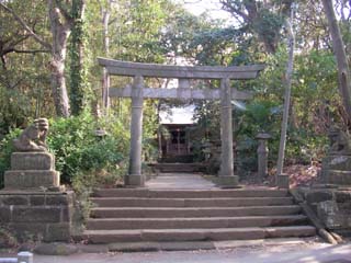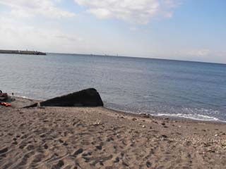 参道をそのまま進むと三戸浜海岸に出て、波打ち際には江戸城の城壁用の四角い石を運ぶ途中で難破した船が置いていった大きなサンコロ石がありました。