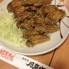 新幹線までの時間でサクッと行けるので便利。定番の手羽先唐揚げと、どて煮とビール。ビールが進みます。