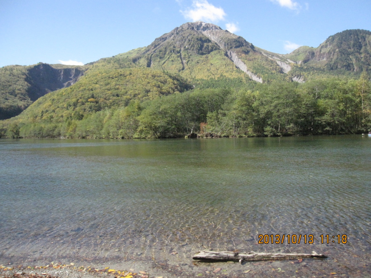 水蒸気の噴煙を上げる焼岳や穂高連峰を背景にして展開する風景は、まさに自然が作り出した超芸術作品!焼岳の大噴火で、一日にして梓川を堰き止めて大正池が誕生したとのこと。絶妙な位置に池を誕生させた自然の力には驚くばかりでした。