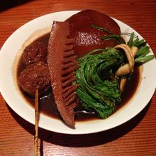 この味噌おでん、見た目からは想像出来ない甘めの味は辛子をつけると更に美味しいです。家庭では作らないけど鹿児島の味。