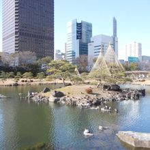 江戸最古の大名庭園で、JR浜松町駅北口から徒歩1分のところにありました。