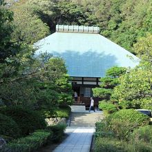 鎌倉五山第五位の名刹で、浄明寺にあるお寺です。頼朝の伊豆挙兵以来の重臣足利義兼が立てたお寺で、室町時代は、境内に23の塔頭を抱える大寺院でしたが、今は本殿、客殿、庫裡などが残っているだけです。緑の中の落ち着いた寺院です。