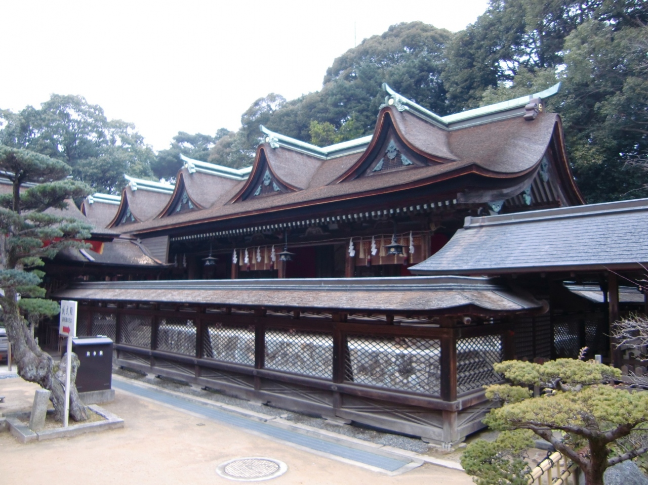 五つの社殿を連結した九間社流造の形式で、国宝になっています。