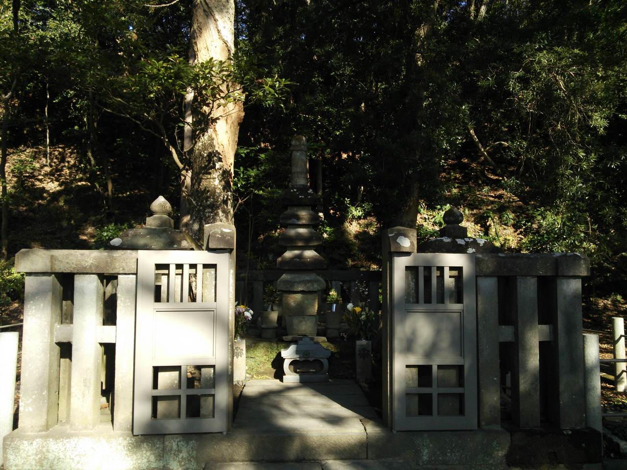 お墓は、住宅地を抜け階段を上がった森の中にあります。とても分かりにくいのですが、小さな看板はいくつもありました。