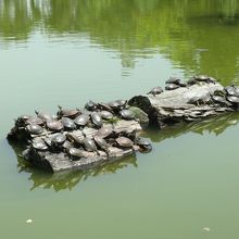 亀がいっぱいいる池
