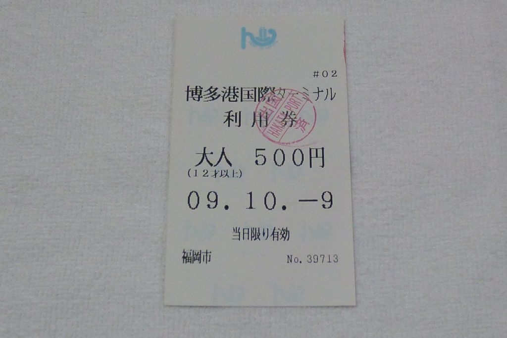 博多港国際ターミナルは博多駅から市内バスを利用しても20分ほどと近いのはいいですね。博多⇔釜山間の高速船やフェリーなども充実しています。館内は1階にチェックインカウンター、外貨両替所。2階には待合所、出国・到着ゲートがあります。3階は展望デッキや洋食レストラン・ハーバービレッジがあります。ちょっと早めに来て散策楽しかったです。