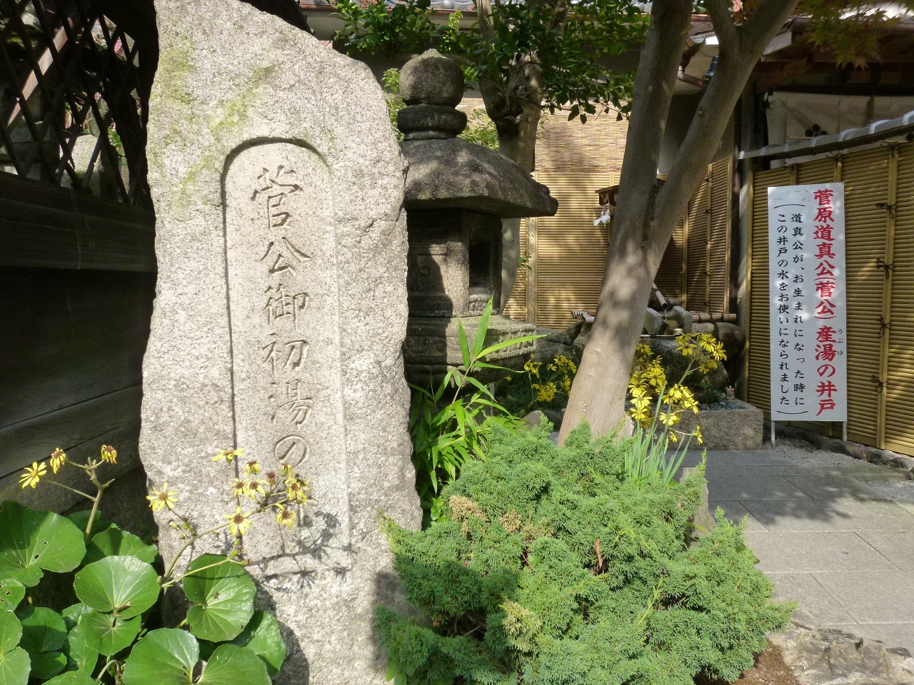 えぇー、菅原道真公が生まれ育ったところ。。。本当かなぁ―。疑ったらいけませんね。場所は、京都御苑付近、地下鉄烏丸線の「丸太町」駅から徒歩5分くらいです。学問の神様として知られる菅原道真公ですね、梅でも有名です。狭いところですが興味ありますね。