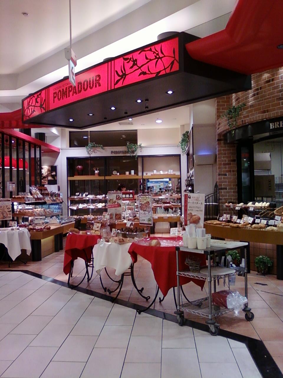 ここのポンパドールさんは、小田急線海老名駅から三分くらいのところにある、丸井ファミリー館の一階にあります。駅から来ると入り口からすぐのところにあって、どうしても足が向いてしまいます。狭いながらも品質も品数も定評があります。海老名市民の非常に頼りになるパン屋さんです。