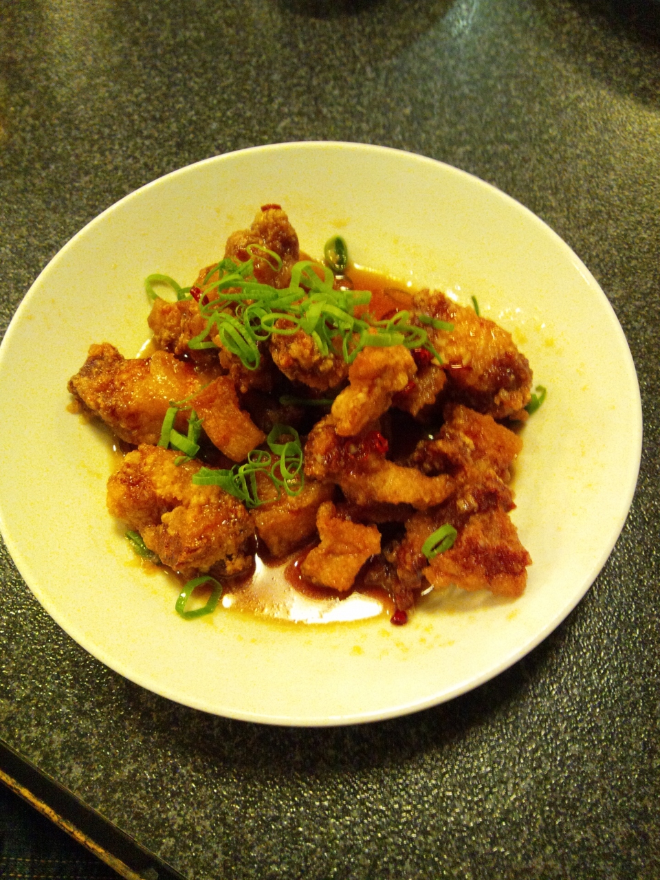 酢豚は一般的な豚肉+野菜+とろみの料理ではなく、とろみなしの豚肉のみを揚げて酢でからめた感じで、とても美味しいです。