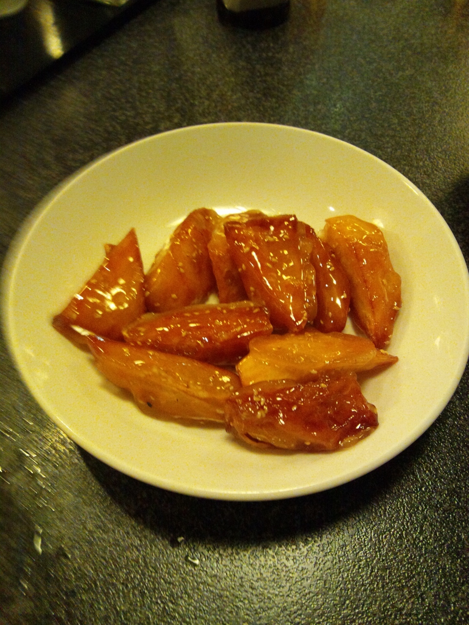 それと芋の飴炊きは飴でからめているため、カリカリとなった芋が甘くてとても美味しいです。