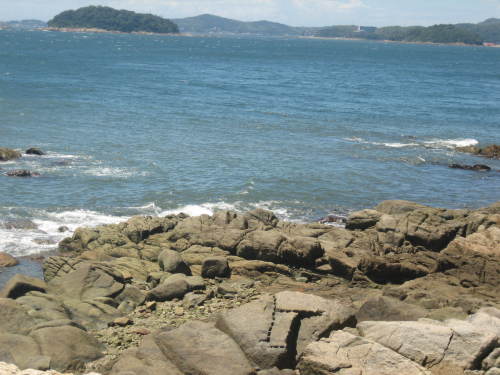 西浦半島の先の方へは、ホテルの下にある駐車場に車を止めて遊歩道を歩いて行くことができます。橋田遊歩道という道が続いています。遊歩道を歩く途中、名古屋城築城のために切り出した石が発見されたところがあったり、少し高いところには神社があったりと、見どころが色々とあります。