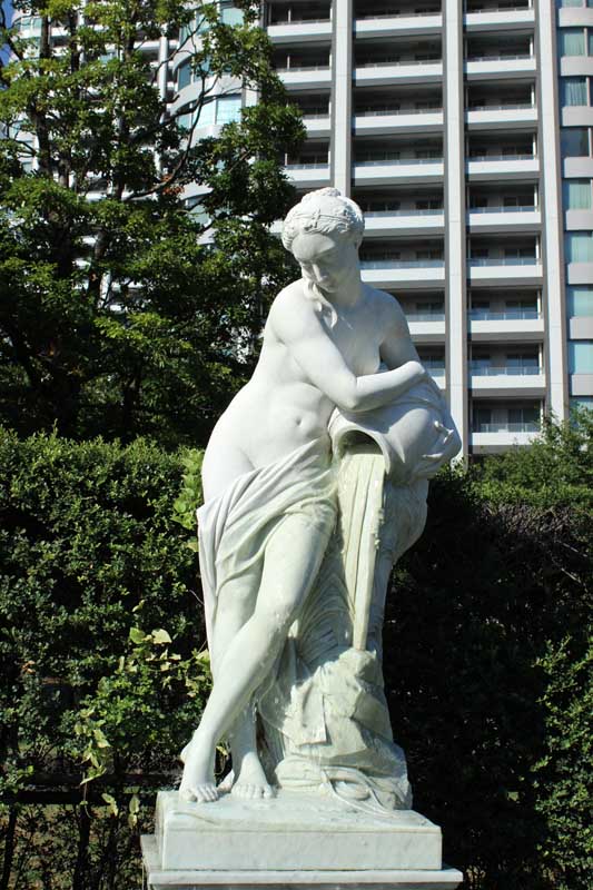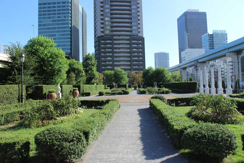 汐留のビルディング街と浜松町の間の、JRの線路と浜離宮の間のにあります。ゆりかもめに乗っていると下に見ることができます。イタリアから寄付をされた、イタリア式の庭園で小さな公園ですが、きれいに整備されていますが、いつ行っても人はほとんどいません。