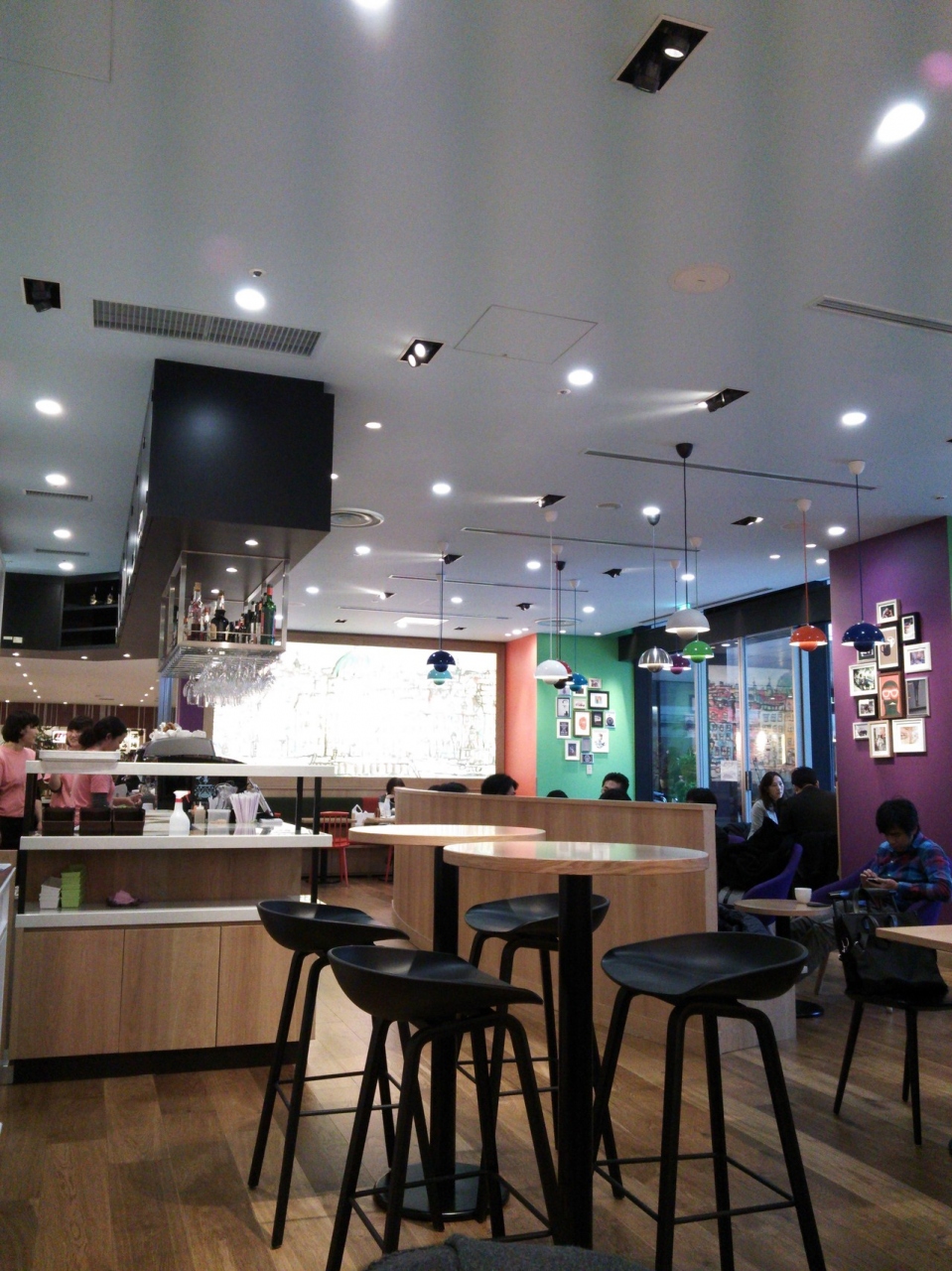 歩き疲れたので地下鉄に乗る前に一休みに、訪れました。平日午後でも、かなりのお客さんが居ました。入口カウンターで注文と会計をし、商品を受け取ってから着席します。コーヒーも美味しくて満足。